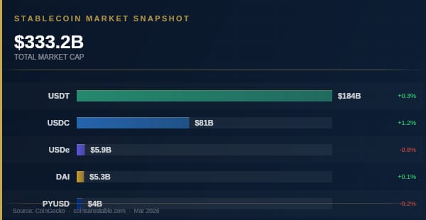 TOTAL STABLECOIN MARKET | — | ~$333B | ↑ |